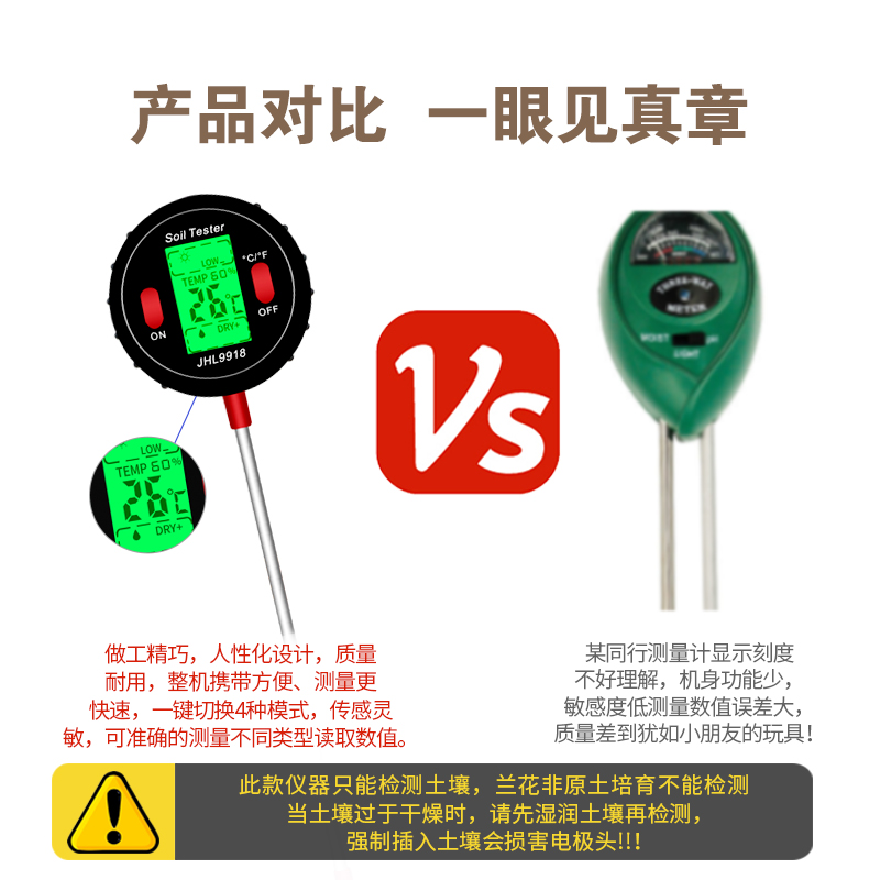 Soil detector horticulture plant flower pot soil ph tester acid pH value temperature and humidity measurement detector