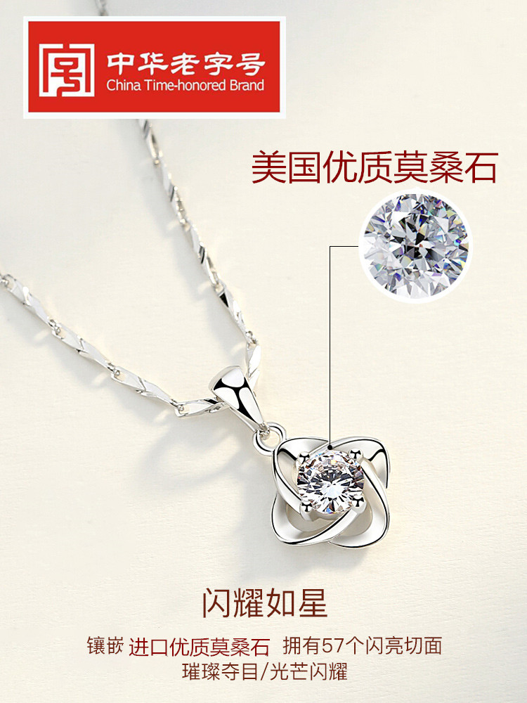 pt999 platinum necklace female platinum clavicle chain four-leaf clover diamond pendant girlfriend birthday gift lettering