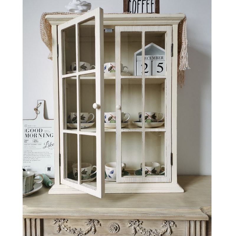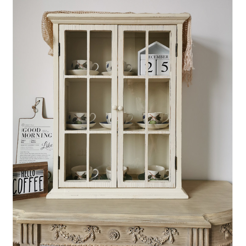 French country retro solid wood old glass door hanging cabinet wall cabinet display cabinet kitchen bathroom wall storage cabinet