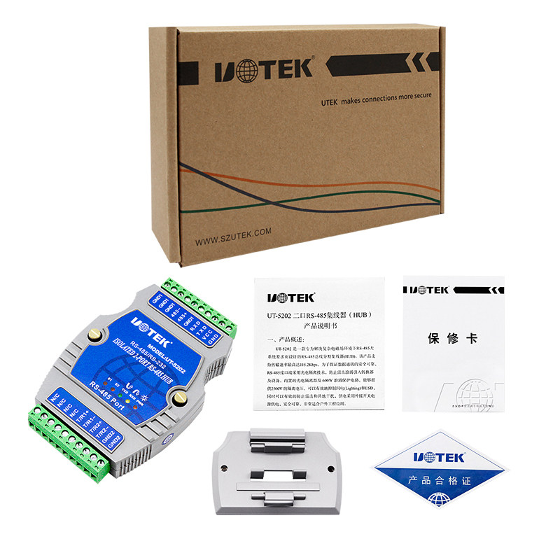 UTEK active RS232 RS485 to 2 port RS485 hub rail type UT-5202