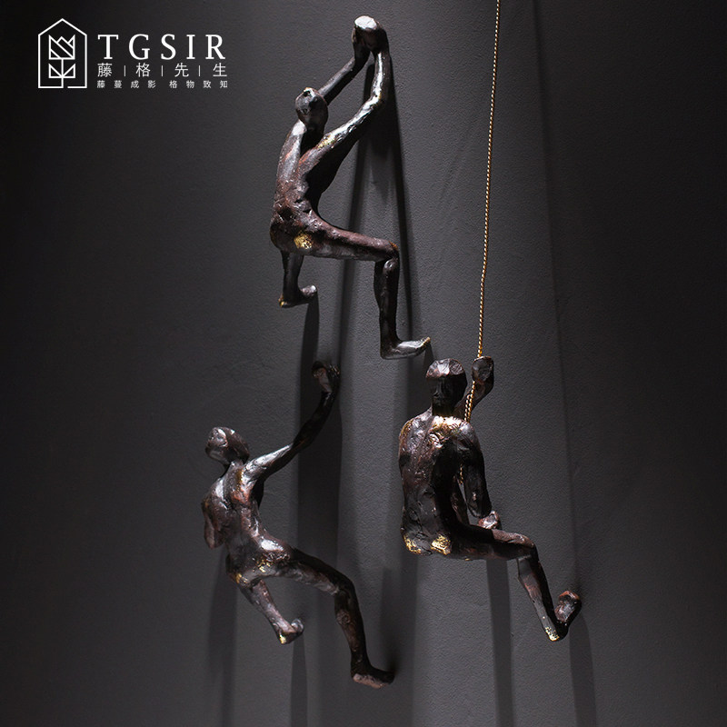 European retro industrial style abstract figure climbing wall hanging living room TV cabinet entrance stairs wall decoration hanging decoration