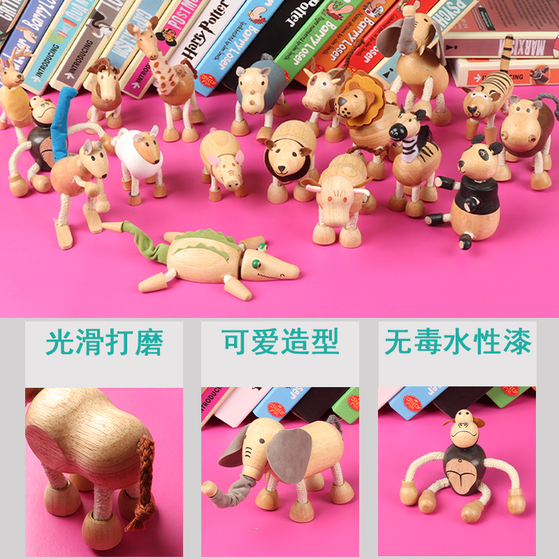 Environmentally friendly solid wood animal doll simulation joint extremities movable model gift children wooden toy home decoration-Taobao