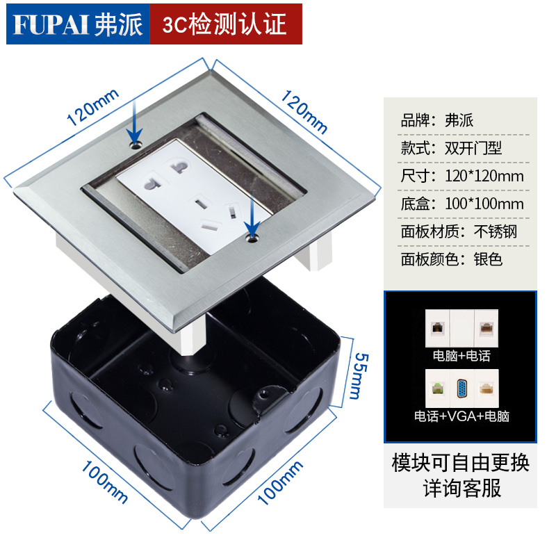 Foppie ground socket hidden thin double-door ground plug stainless steel ground socket waterproof five-hole telephone computer ground plug
