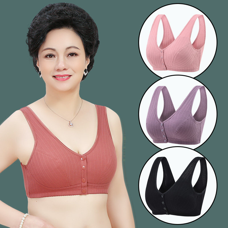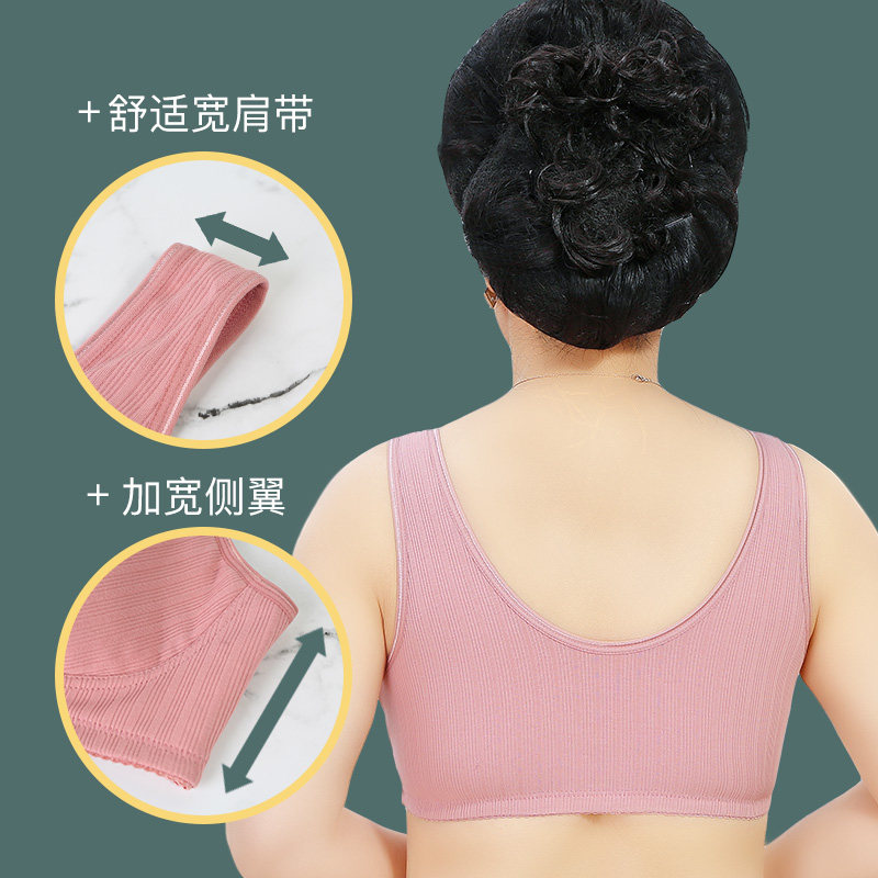 Mommy underwear old people bra pure cotton without steel ring large vest type thin women without breast mat front button