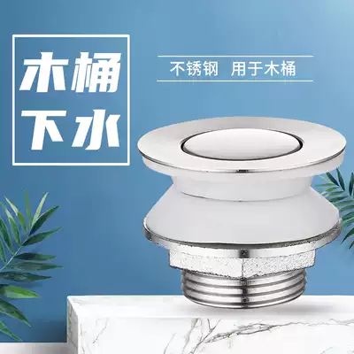 Clamshell drain Wooden bucket Bath bucket Shower room Bathtub tub All stainless steel drain valve drain accessories