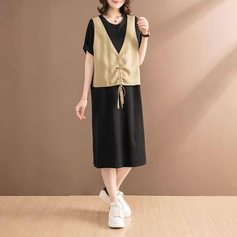 Clear cabin special for women in the middle and long version of summer loose rope fake two short sleeve skirts child tide