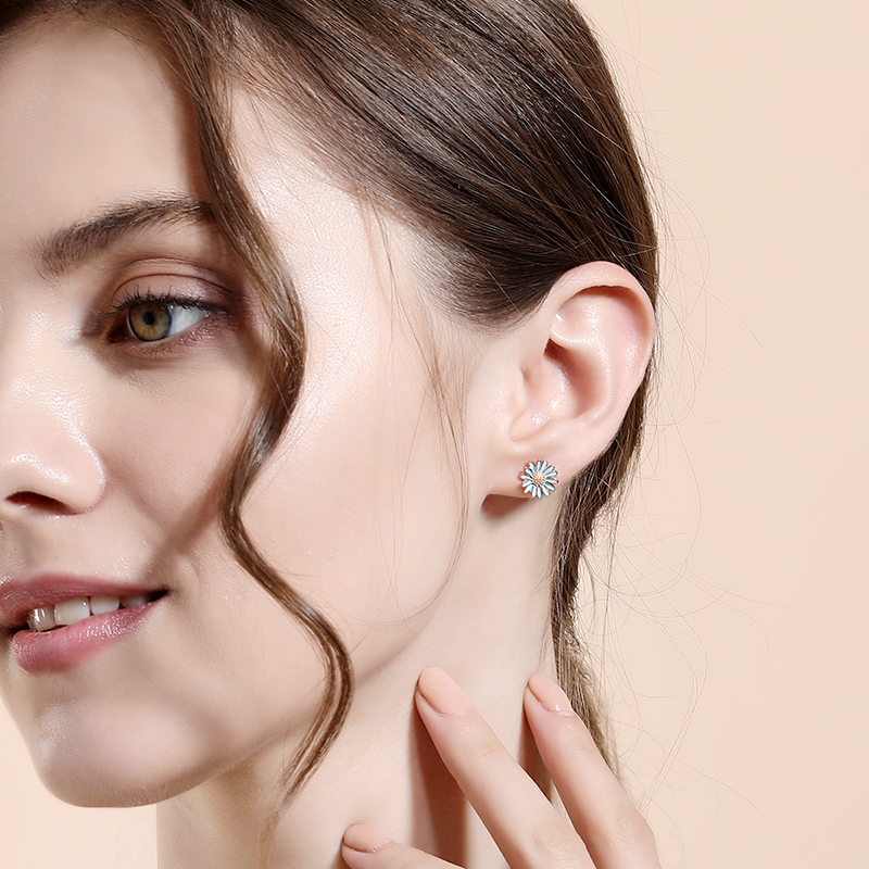 Small daisy ear pin female summer sterling silver 2022 new trendy sweet and delicate flower earrings niche design earrings