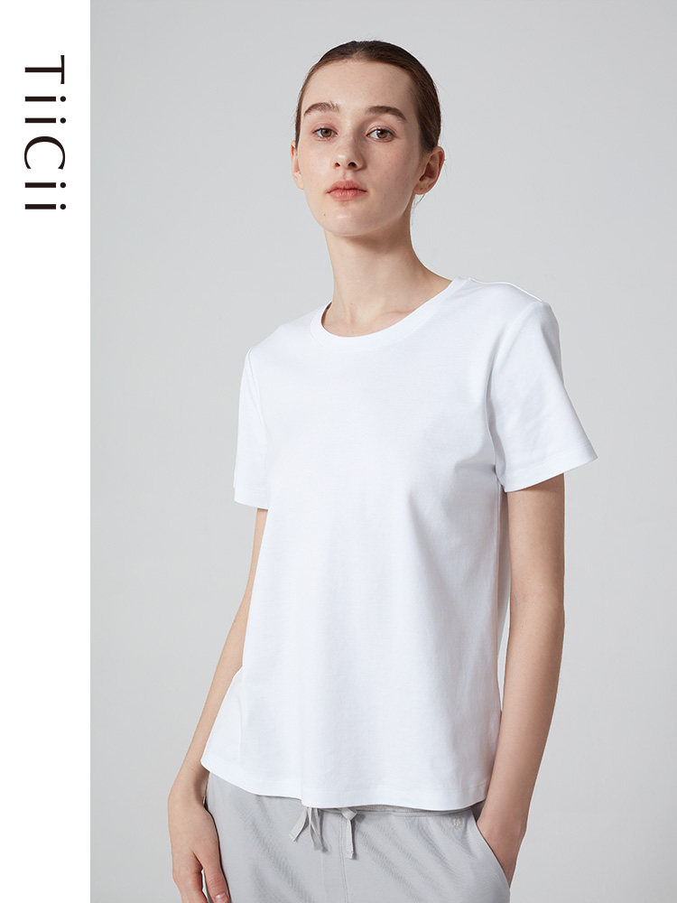 TiiCii cloud touch simple cotton T-shirt ladies summer all-match short-sleeved cotton round neck basic bottoming shirt