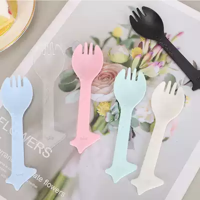 Disposable plastic spoon fork fork spoon Fruit fork Cake fork Independent packaging dessert spoon Ice cream spoon