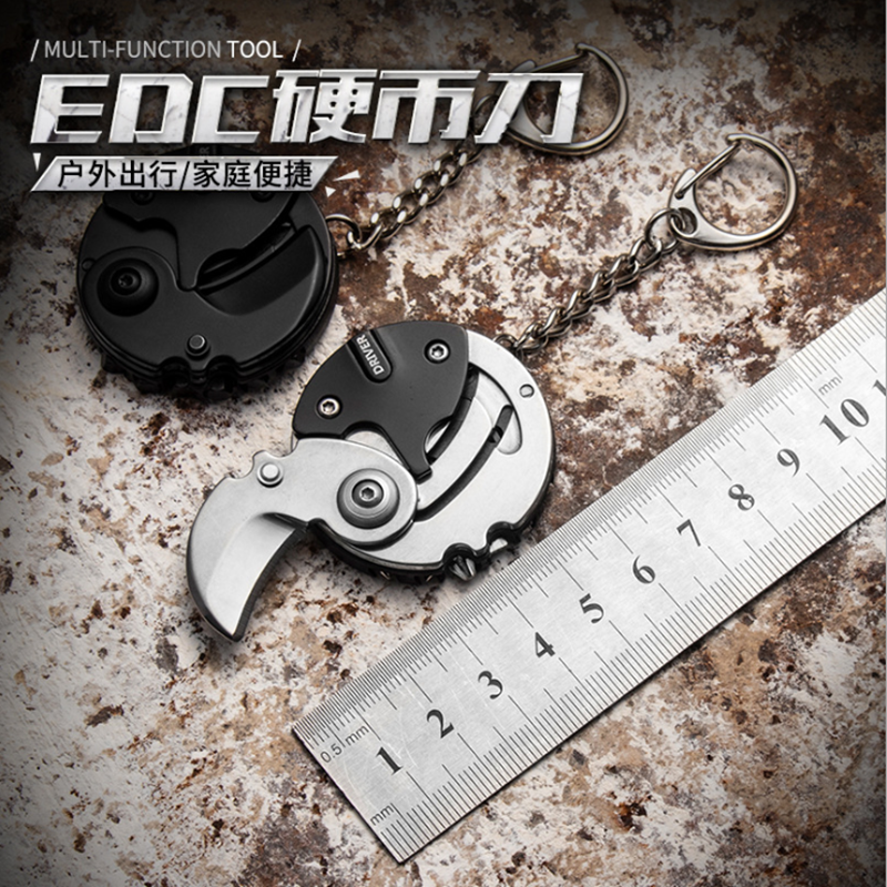 Multifunctional coin knife with screwdriver tool mini outdoor folding knife portable portable keychain pendant knife
