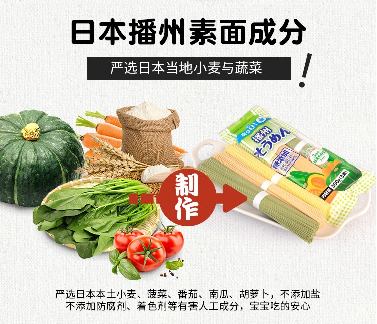 Japanese imported food Banzhou Shintaro spinach pumpkin tomato fine noodles vegetable noodles baby non-staple food 300g