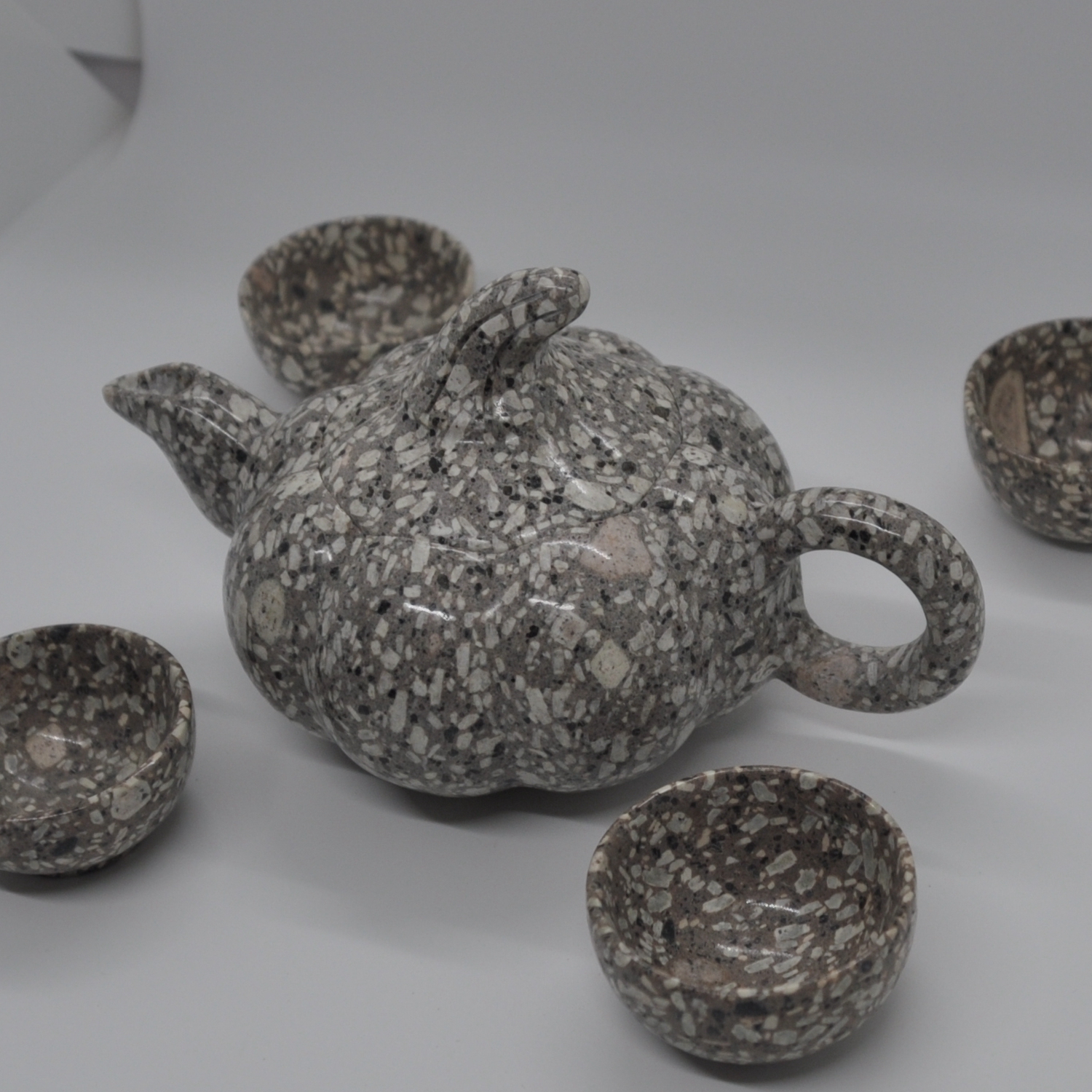 Maifan stone tea set teapot set set Maifan stone kung fu teapot black crystal stove high-grade wood burning complete set water boiler