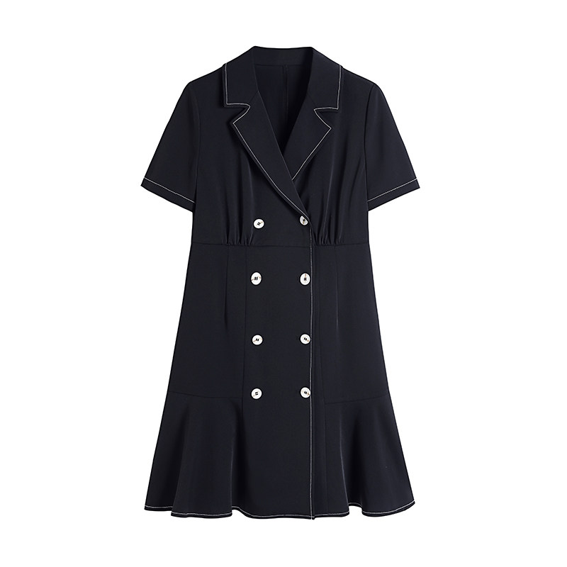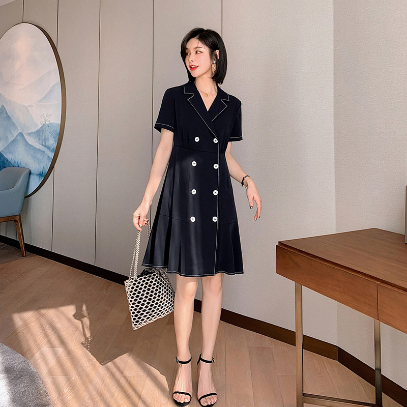 Blue language big size woman dress Fat younger sister mm Slim Suit Collar Skirt 2022 Summer Dress Temperament Cashew to cover Flesh Dress