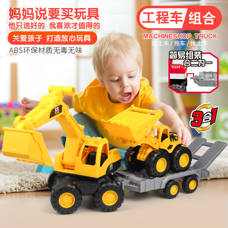 Large excavator toy vehicle engineering vehicle children sliding bucket beach excavator car set