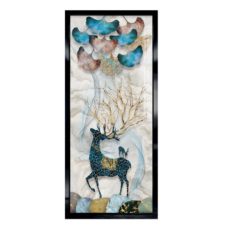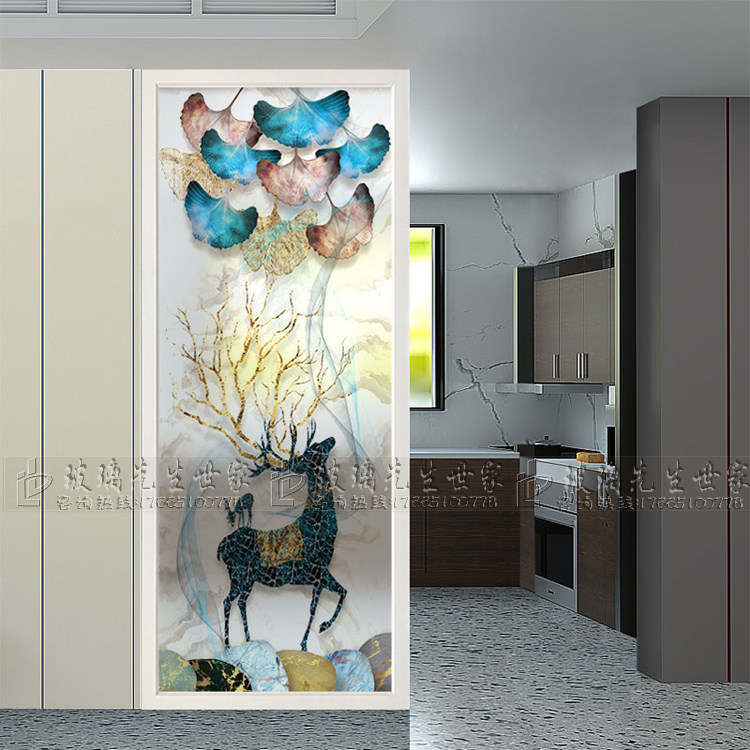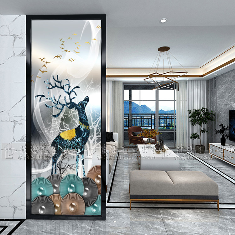 Minimalist Modern Nordic Art Glass Entry Entrance Screen Partition Living Room Decoration Custom Steelmaking Craft Elk Deer