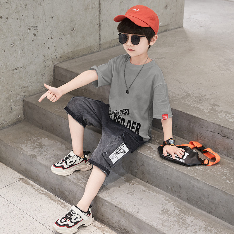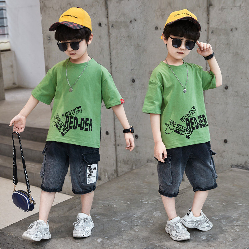 Children's clothing boy summer suit 2022 new summer middle-aged boy boy handsome and fashionable short-sleeved two-piece summer suit
