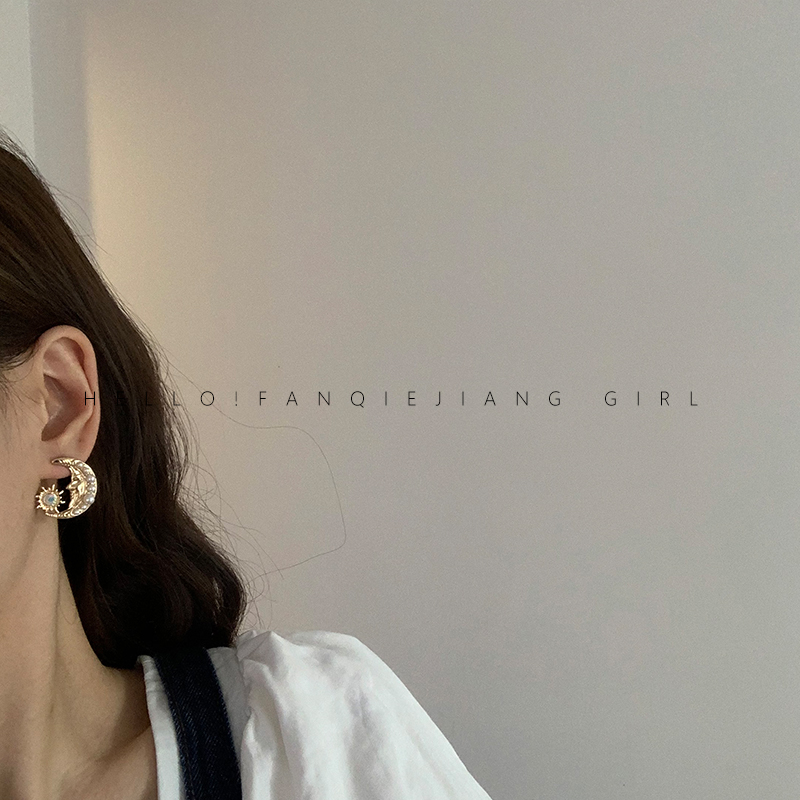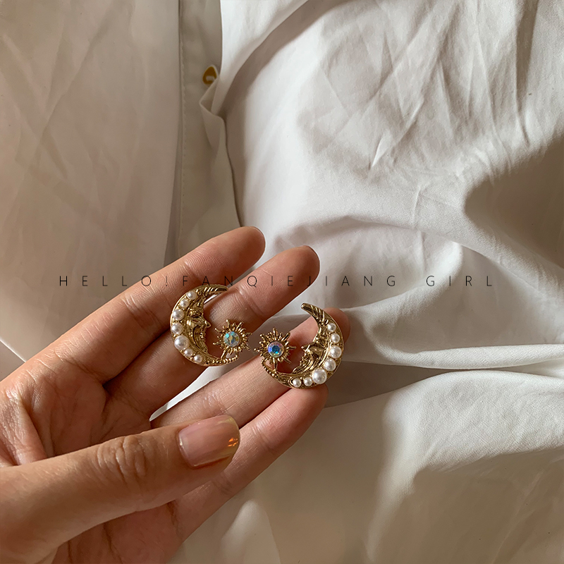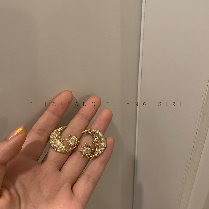 vintage advanced sensational retro moon earrings earring female French style net red 2020 new wave qi atmosphere