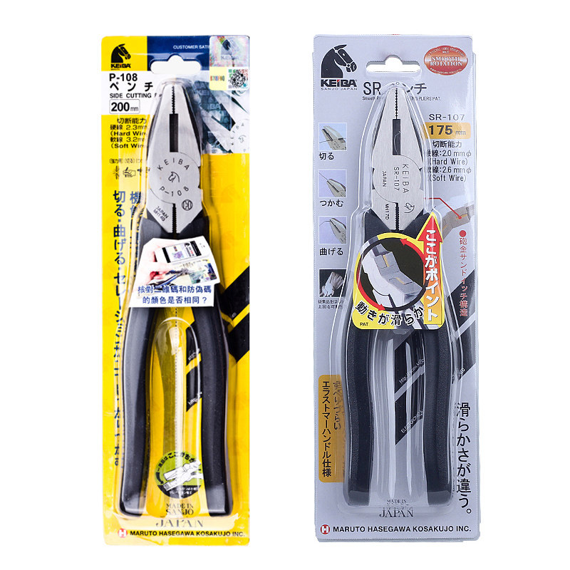 Japan horse card KEIBA electrician steel wire pliers Industrial grade 7 inch labor-saving old tiger pliers insulated wire cutting pliers imports P108