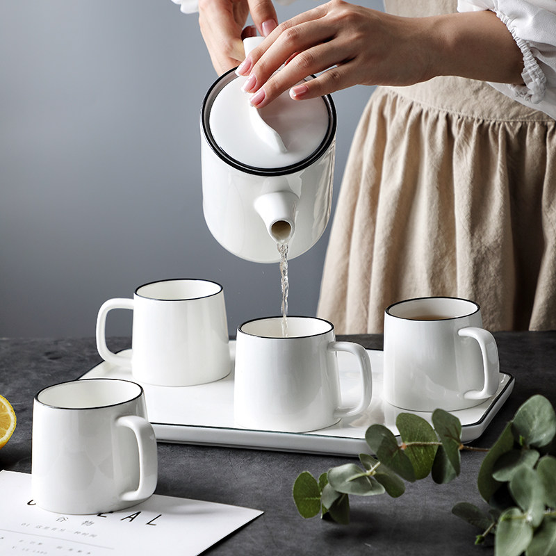 Nordic ceramic kettle Home Water tool suit Living room Cold Kettle Heat Resistant Lower Afternoon Tea Coffee Cup Disc with depository