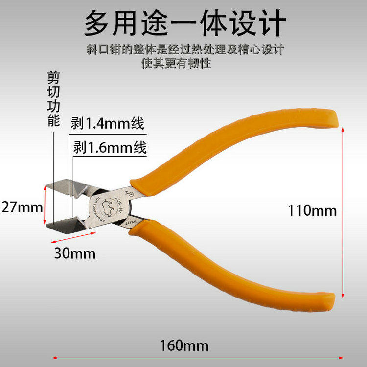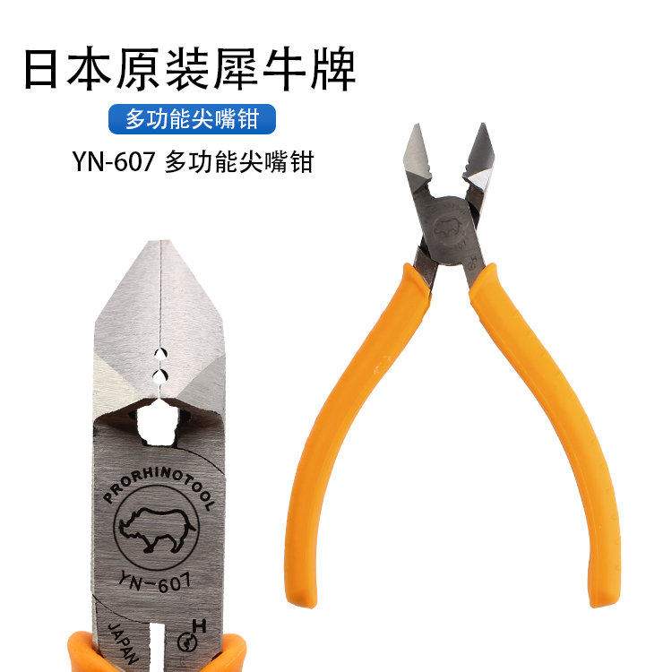 Japanese rhinoceros 6 inch slanted nozzle pliers YN-607 exfoliating double with cut wire pliers YP-607 sharp mouth pliers