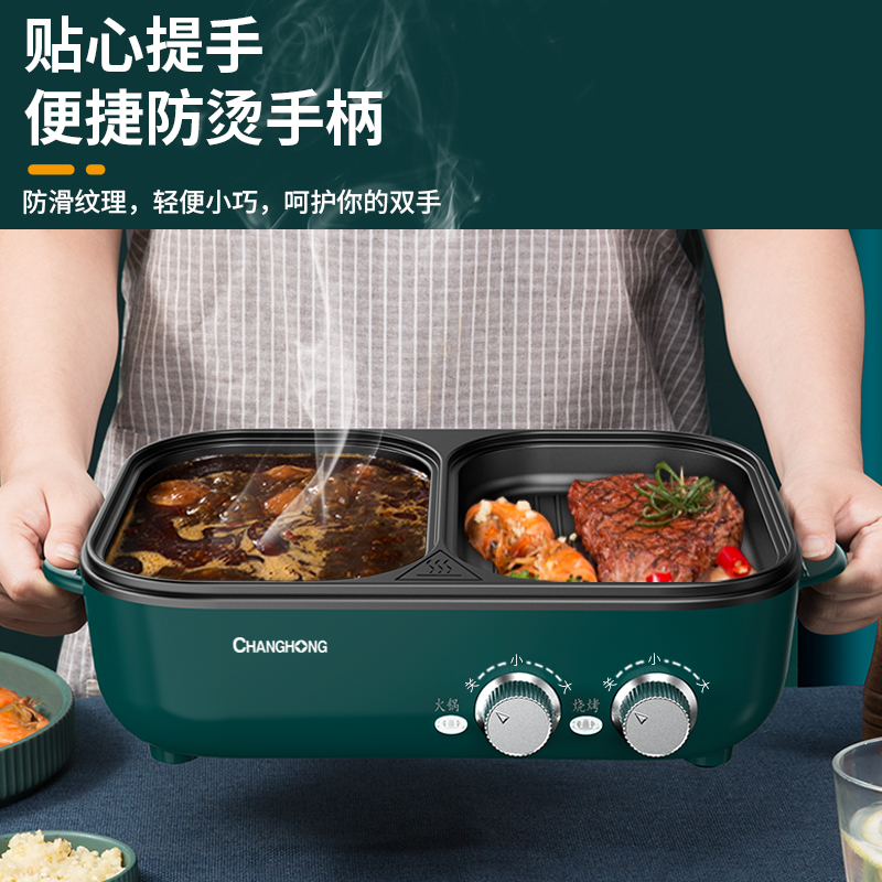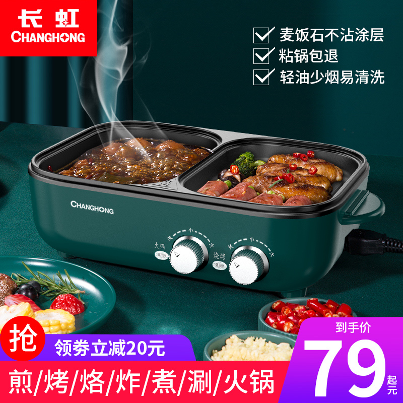 Long-iridescent hot pot barbecue integrated pot Home Multi-functional decoctions Dormitory Roast Pan Electric Grill Pan Barbecue Grill Pan