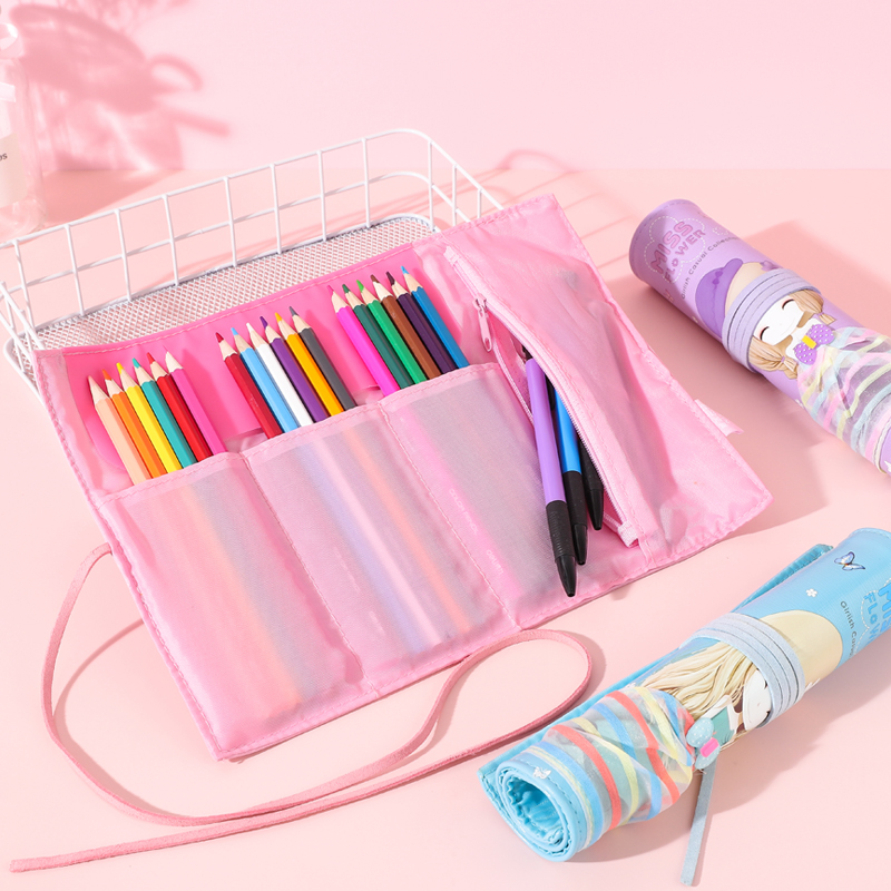 Flower girl creative large capacity pen curtain curtain simple pupil pen bag canvas girl in young girl heart middle school students pen bag professional fine art collection package Xiaoxin Han Edition