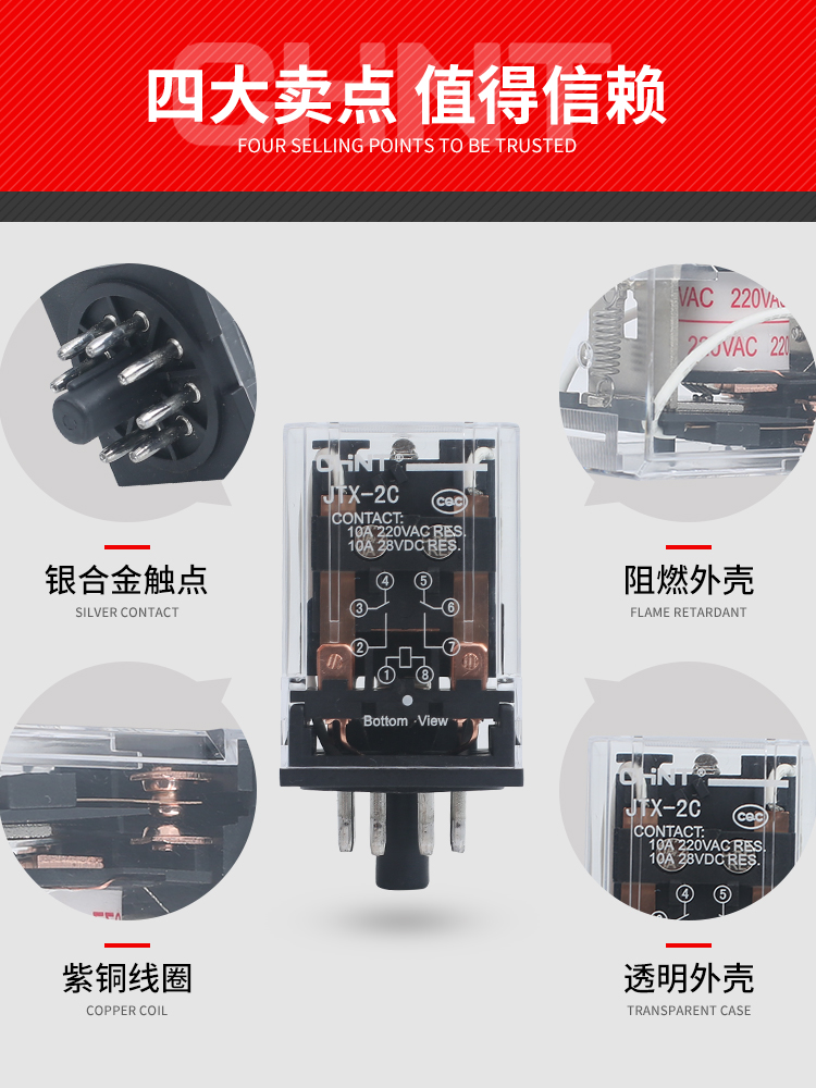 CHINT small electromagnetic relay JTX-2C 3C 220V DC 24V base round 8 11 feet