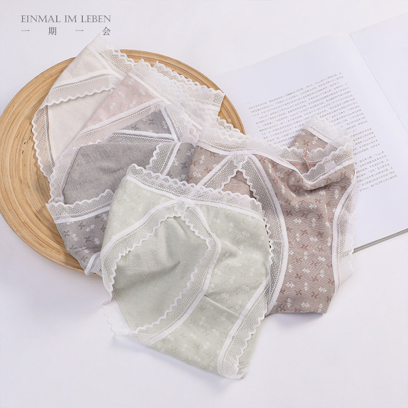 Really super good wearing day series Summer high opening fork lace mid low waist girl pure cotton triangular underwear student