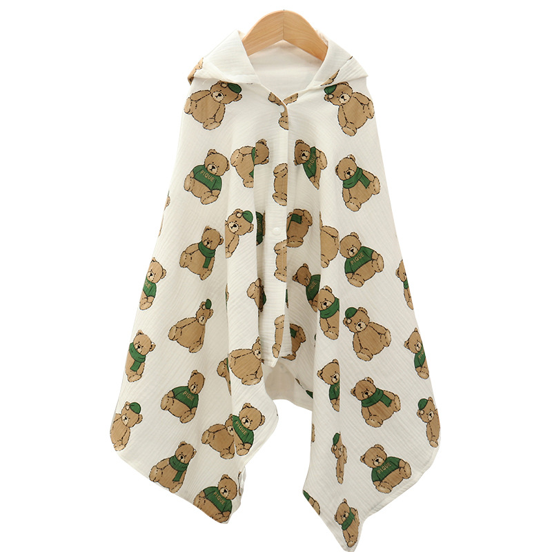 Pure cotton 4-layer gauze infant child bath towel baby with cap cloak super soft absorbent cloak beach swimming