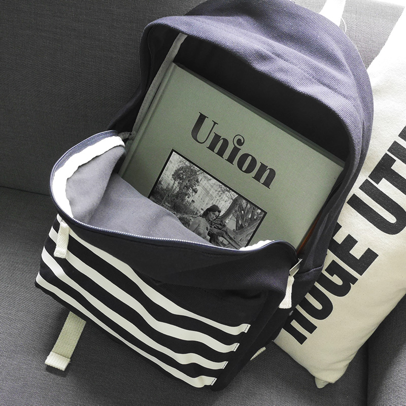 French Striped Navy Wind Thick Sails Cloth Bag New Rear Shoulder Bag Neutral Casual Pull Chain Women's Bag School Bag Spot