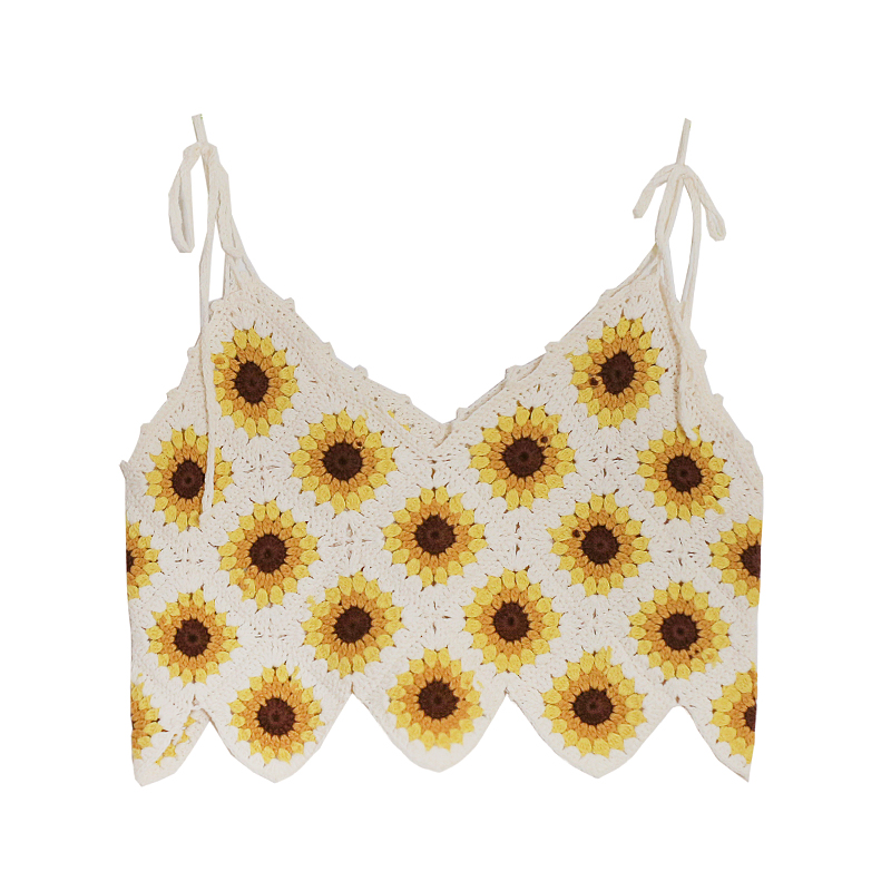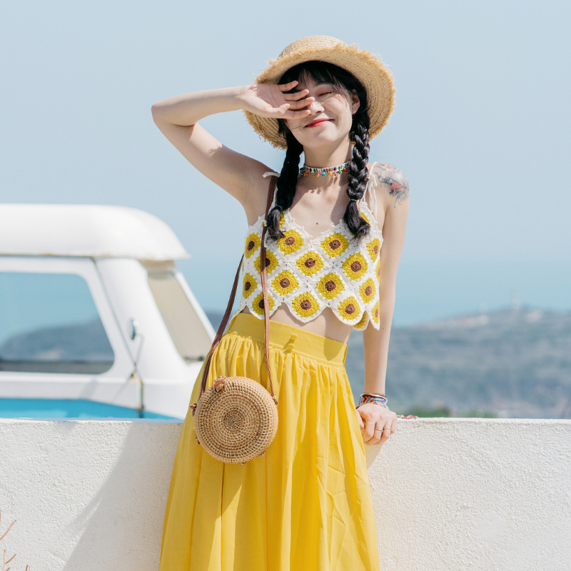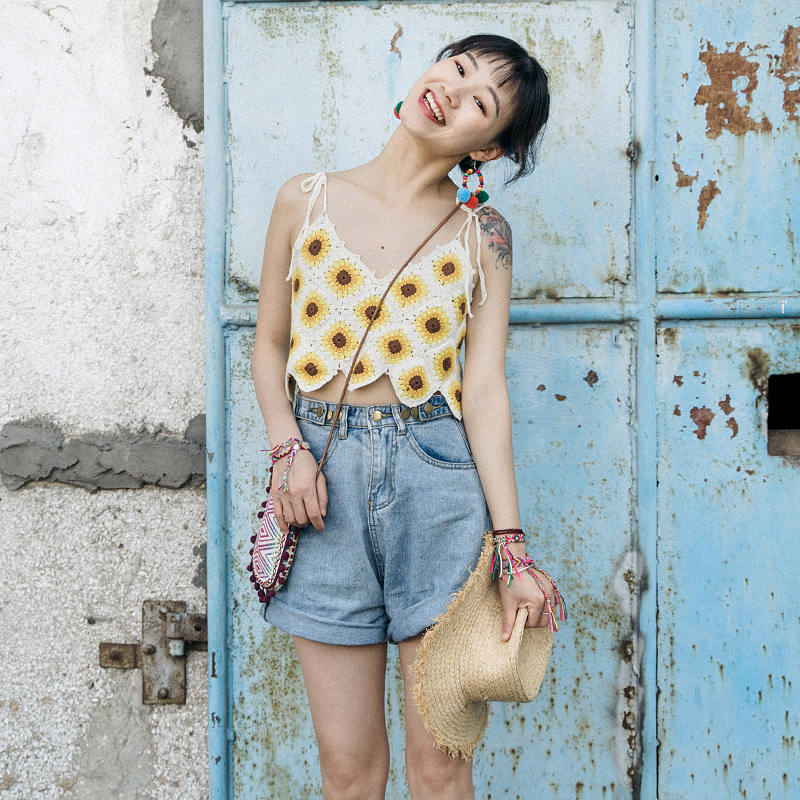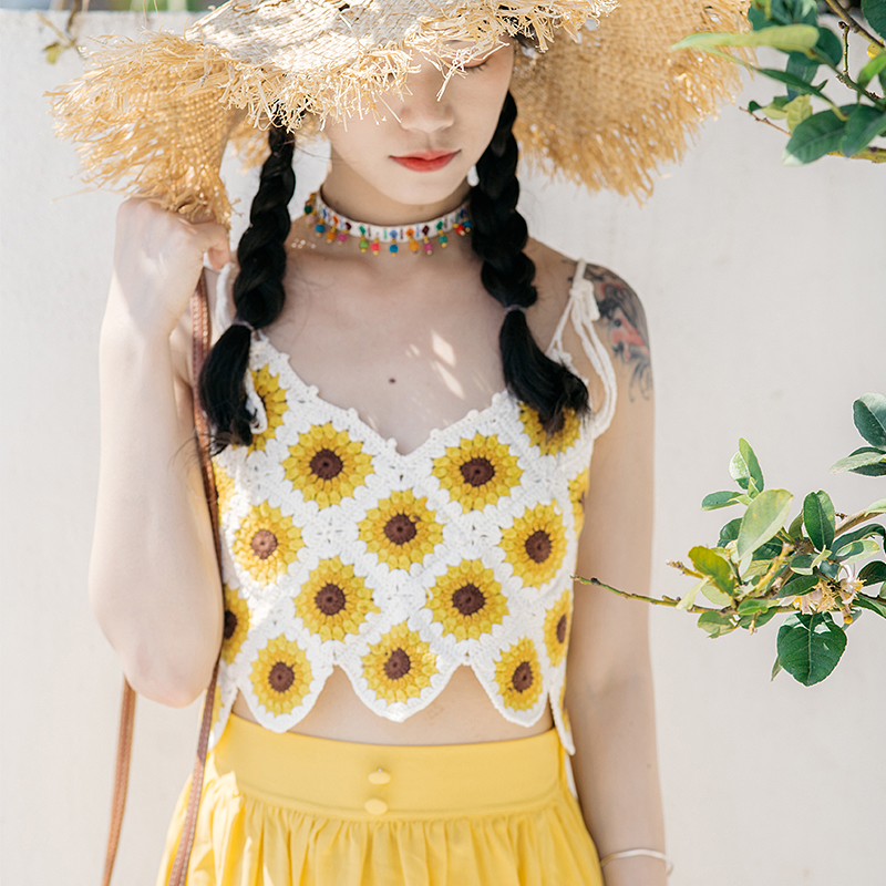 Sunflower knitting with hooky vest and tattoo wind outside wearing Shabohemia homemade hook tops