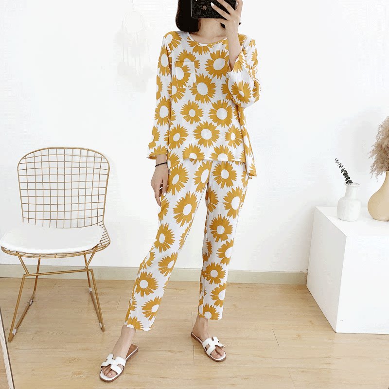 Summer cotton silk pyjamas woman long sleeve long pants thin section pure cotton Home Two-style suit Large size manmade cotton lunar subsuit