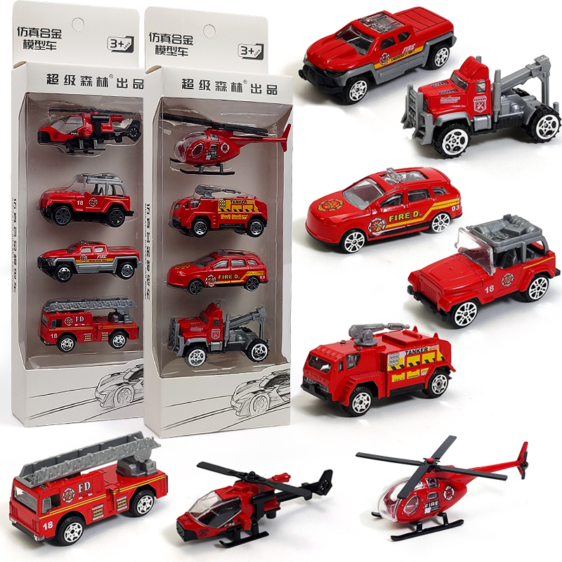 Boy alloy car fire truck police car suit children's toy car sliding car model baby pocket car