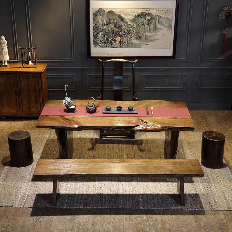 Simple modern solid wood household tea table Tea table and chair combination Living room tea table and chair Old pine tea table customization