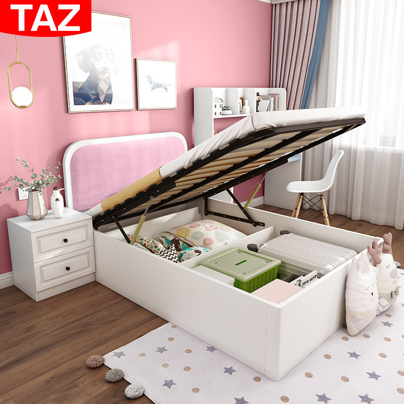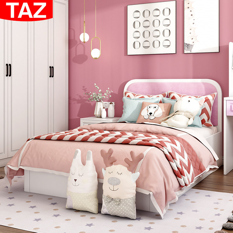 Children's bed girl princess bed single bed girl pink bed children's room bedroom furniture soft bag high box 1 2 meters