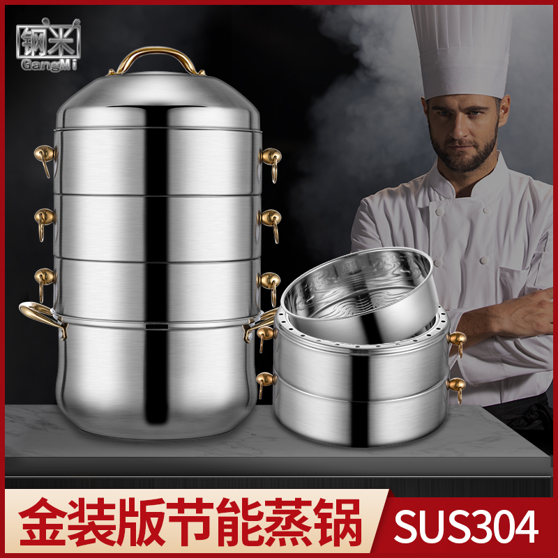 Steel rice steamer Home 304 stainless steel Three 4 layers Steam Cage Without Hole Original Taste Steamed Rice Pan Not To String Taste Big Energy Saving