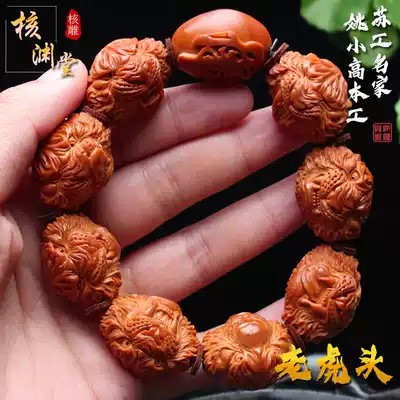 Zhoushan Soviet famous Yao Xiaogao this work pure hand-made olive nuclear carving big seed Tiger head Wen play hand