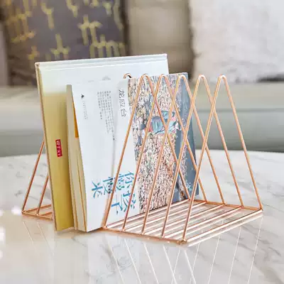 Light luxury Nordic alloy desktop newspaper rack living room office decoration model room household decoration newspaper rack