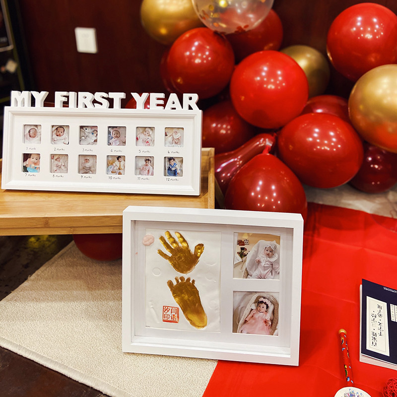 Baby hand and foot print mud fetal hair souvenir photo frame Newborn baby hand and foot print Permanent full moon 100 days gift