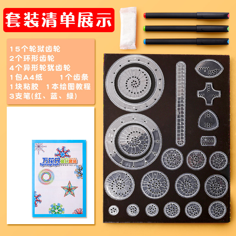Kailiwen variety million flower ruler magic set Children's template Multi-function painting hand copy newspaper Bustling flower curve gauge Primary school students magic drawing ruler painting flower drawing gear Creative large