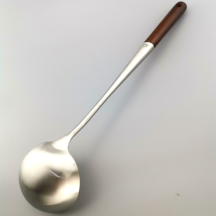 Wanley come Fried Spoon 304 stainless steel spoon frayed wooden handle extended anti - hot cook spoon kitchen supplies