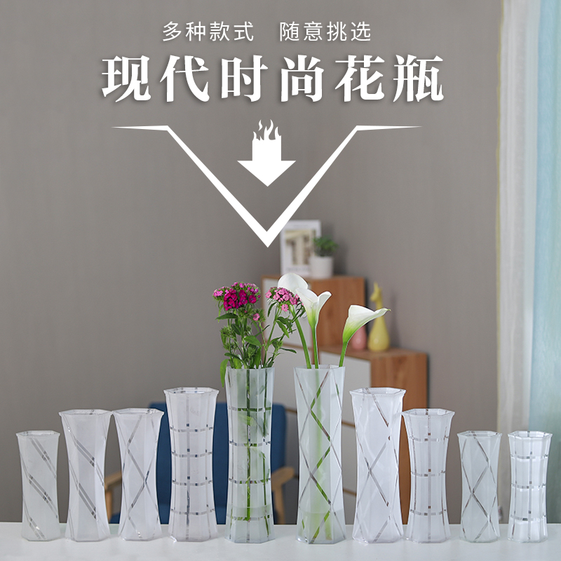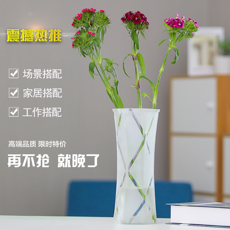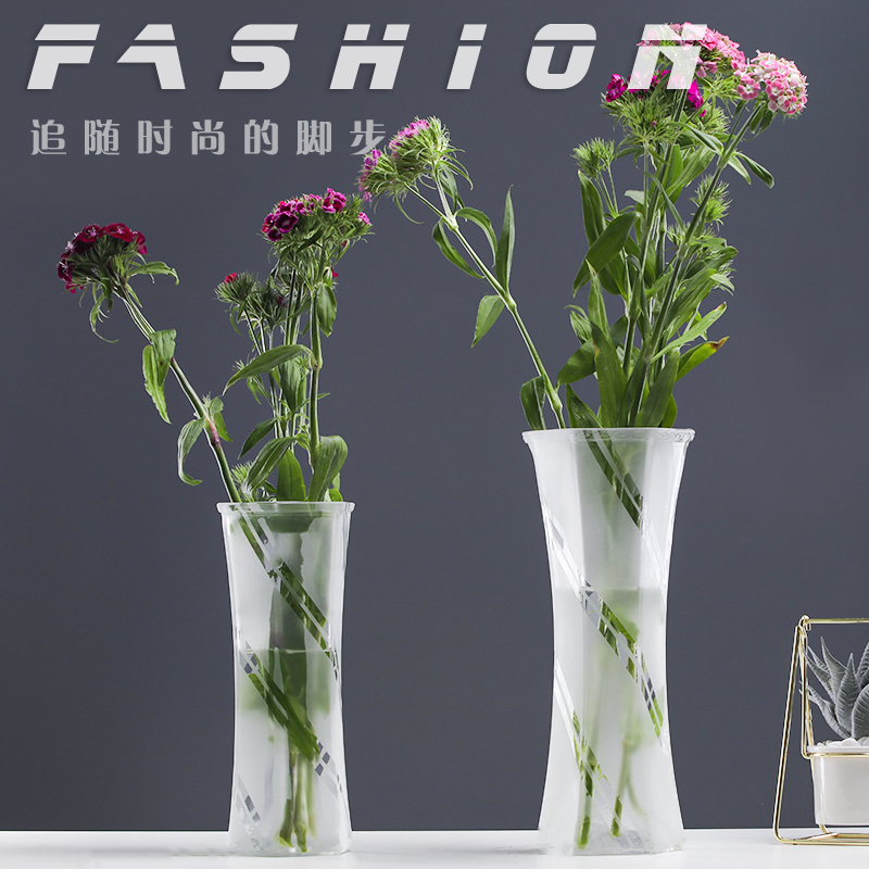 Creative large frosted transparent hexagonal glass vase Water peels rich and expensive Bamboo lily flowers Home Living room hem