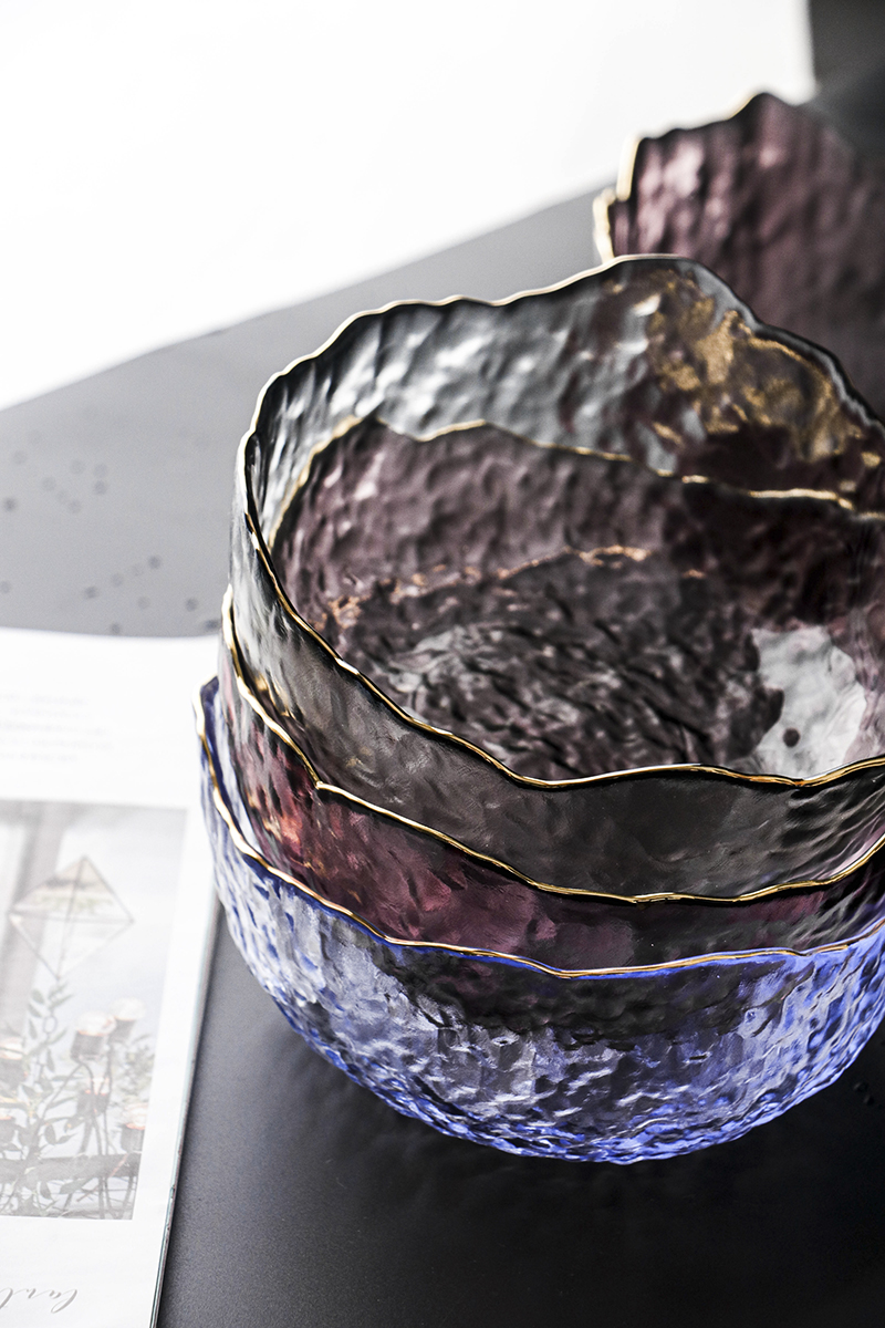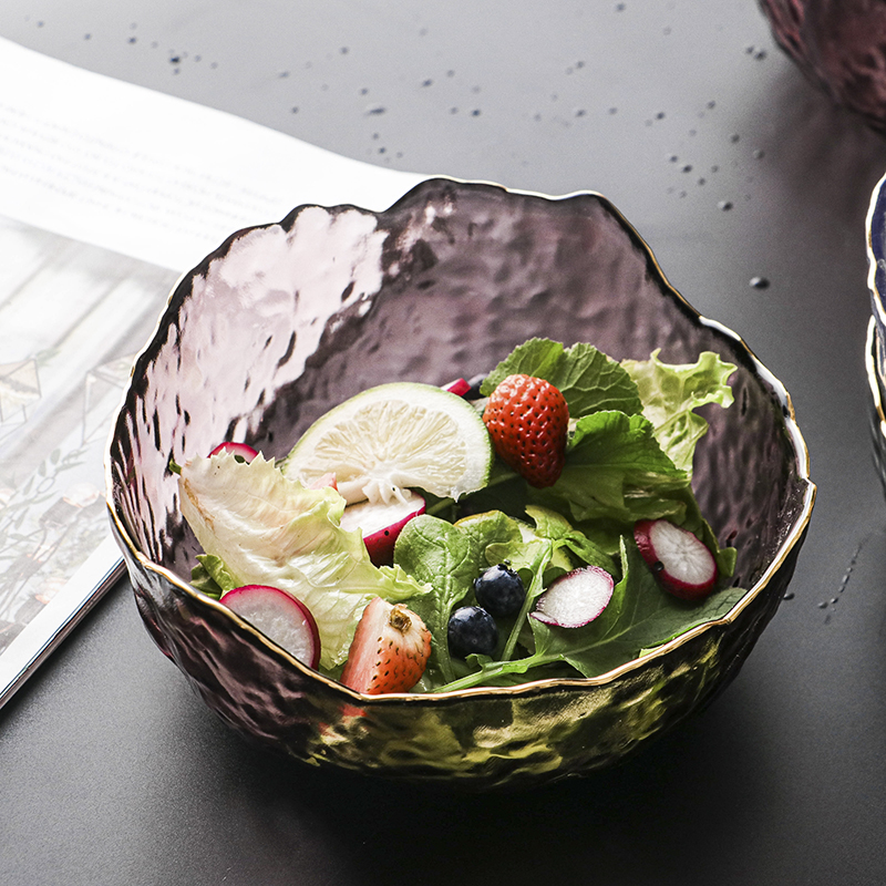 Phnom Penh Glass Bowl Salad Bowl Fruit Bowl Hammer Grain Bowl Nordic Style Unleaded Creative Irregular Bowl Home Big Bowl