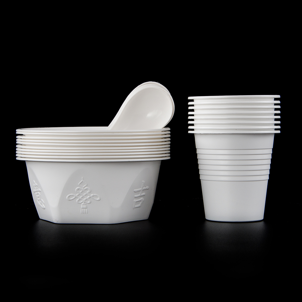 Disposable bowls and chopsticks set banquet home outdoor barbecue cups and saucers spoon environmental protection thickened wedding plastic tableware bowl