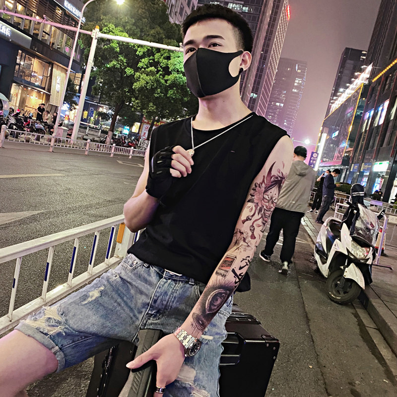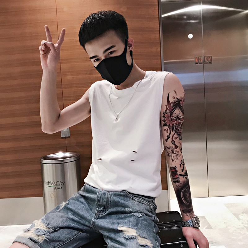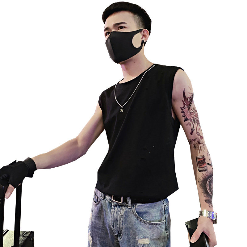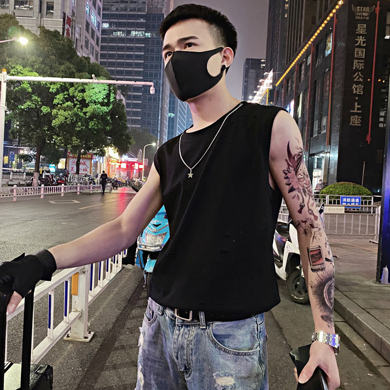 2021 net red sleeveless vest men's T-shirt summer wear waistband loose Tide brand hole sports fitness horse clip