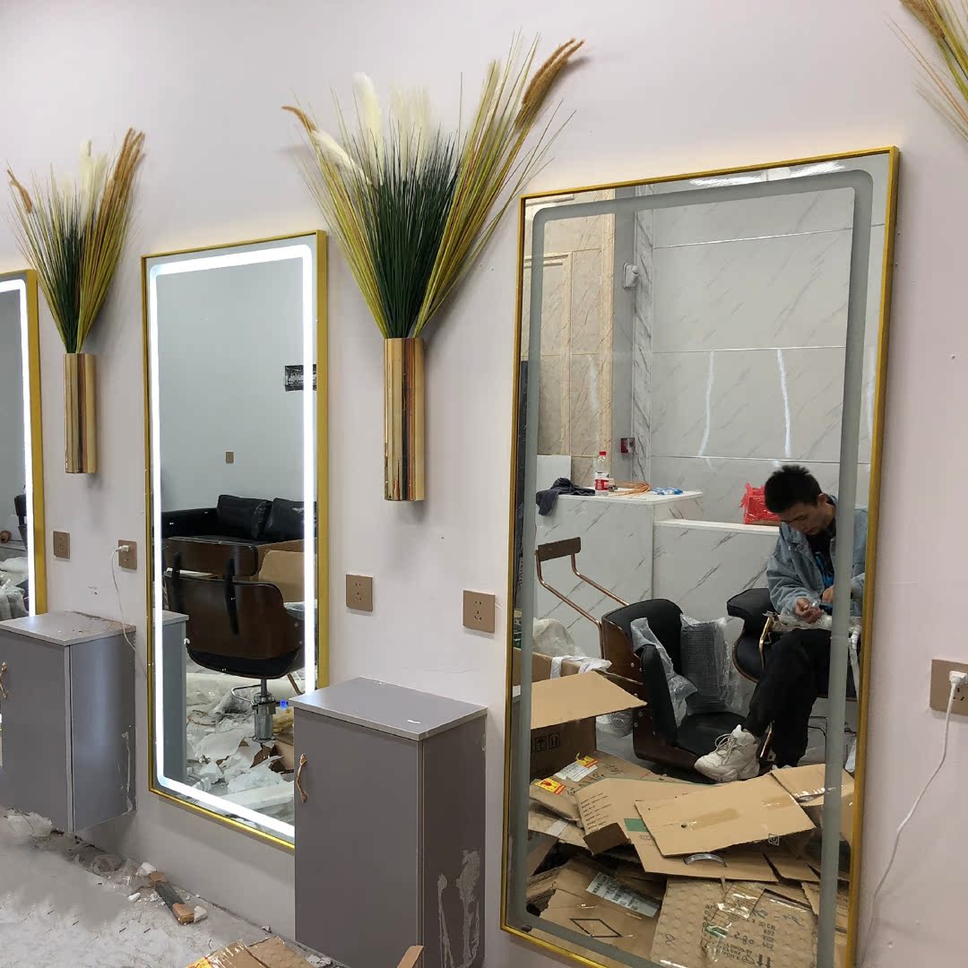 Net Red Beauty Hair Shop LED Lights Mirror Hairdresse shop Mirrors Hair Salon Porch Ostyle Minimis Touch Beauty Single-sided Mirror Table