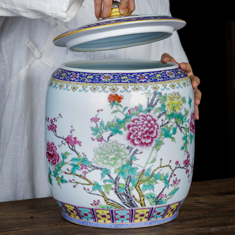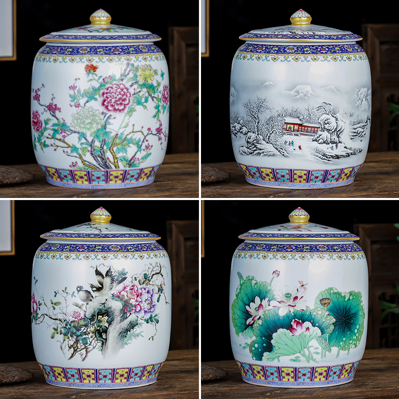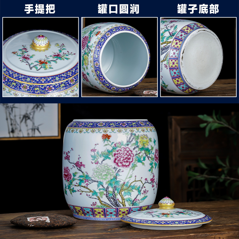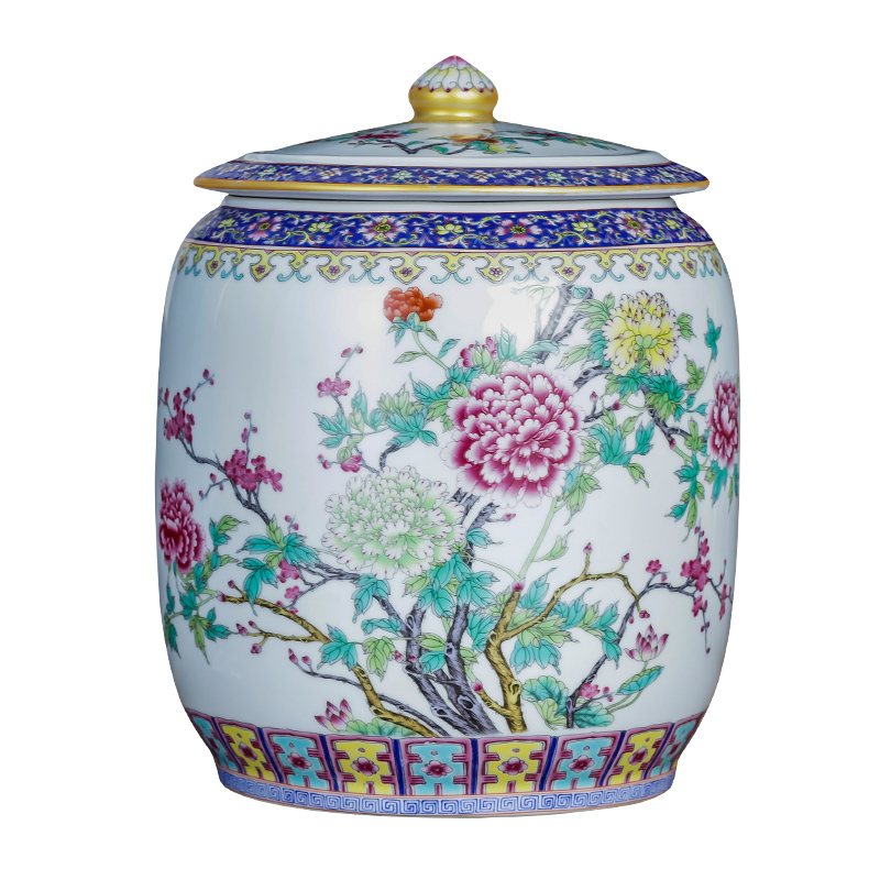 Enamel color < flowers open rich and expensive > large number straight cylinder tea leaves jar enamel color < > > large number straight cylinder tea leaves jar enamel color < ho incense clear rhyme > large number straight tube tea leaves jar enamel color < Fugui white head