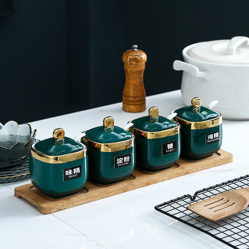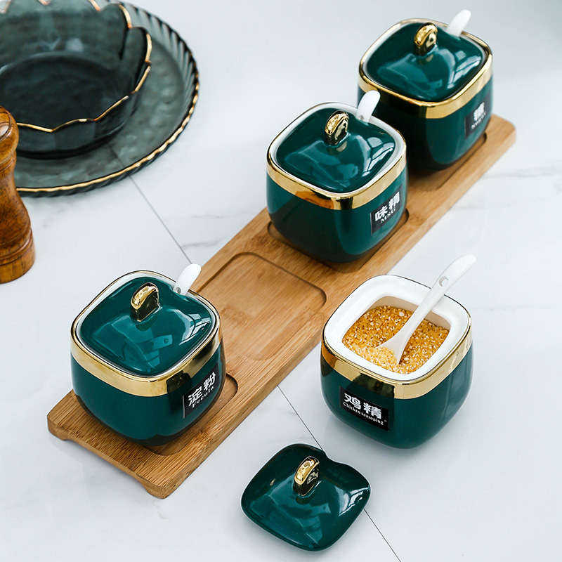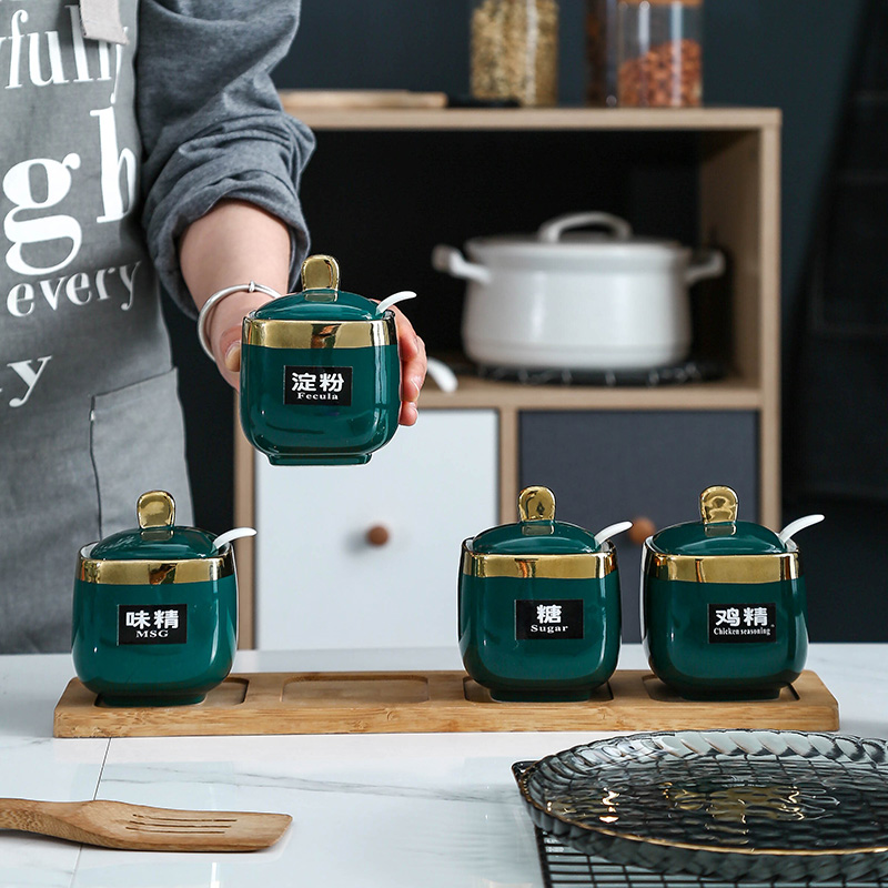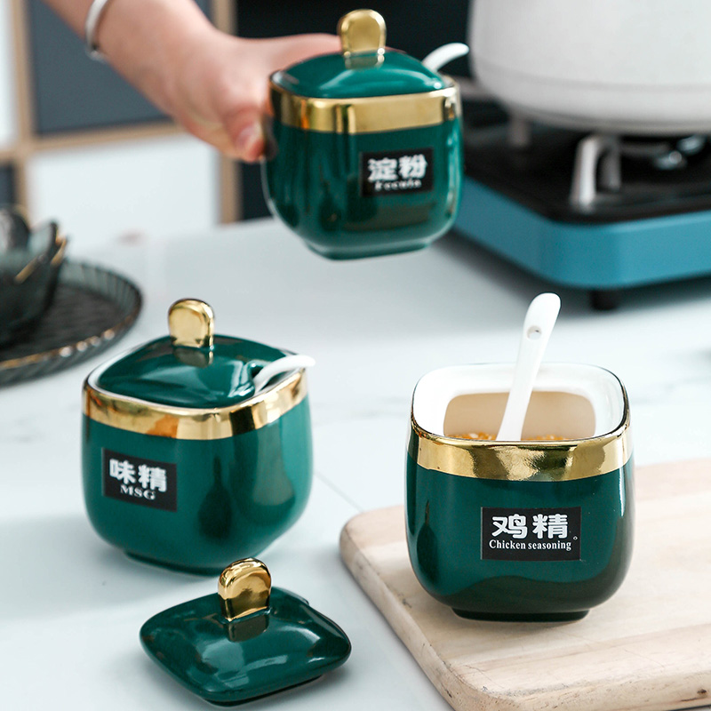 Nordic Ceramic Seasoning Jar Sauce Box Kitchen seasoning jar Home Seasoning Box Salt Sugar Jars With Lid Shelve