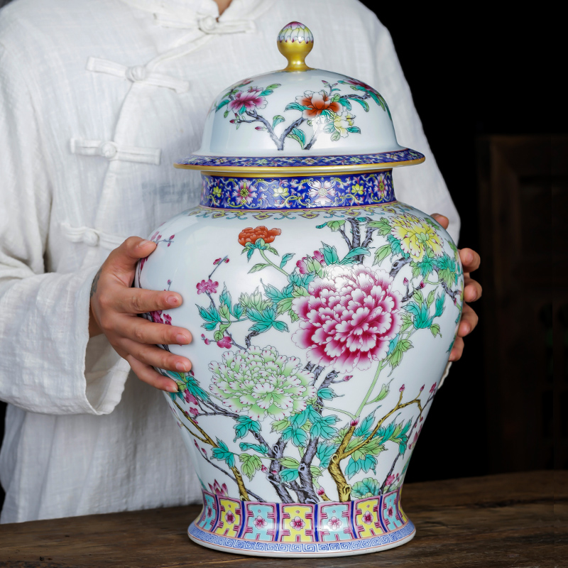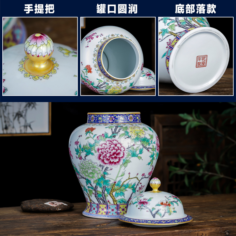 Jingdezhen porcelain tea pot large vintage enamel color large capacity antique Pu 'er tea storage pot home