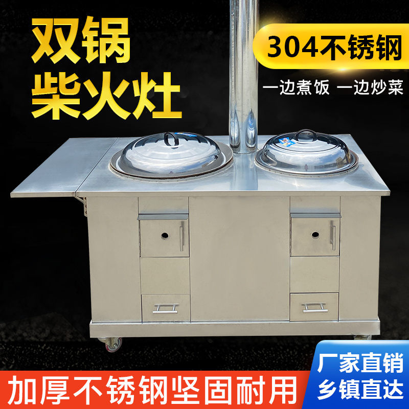 304 stainless steel firewood stoves domestic burning wood firewood countryside mobile New smokeless primary and secondary double boiler energy saving double mouth gas stove table